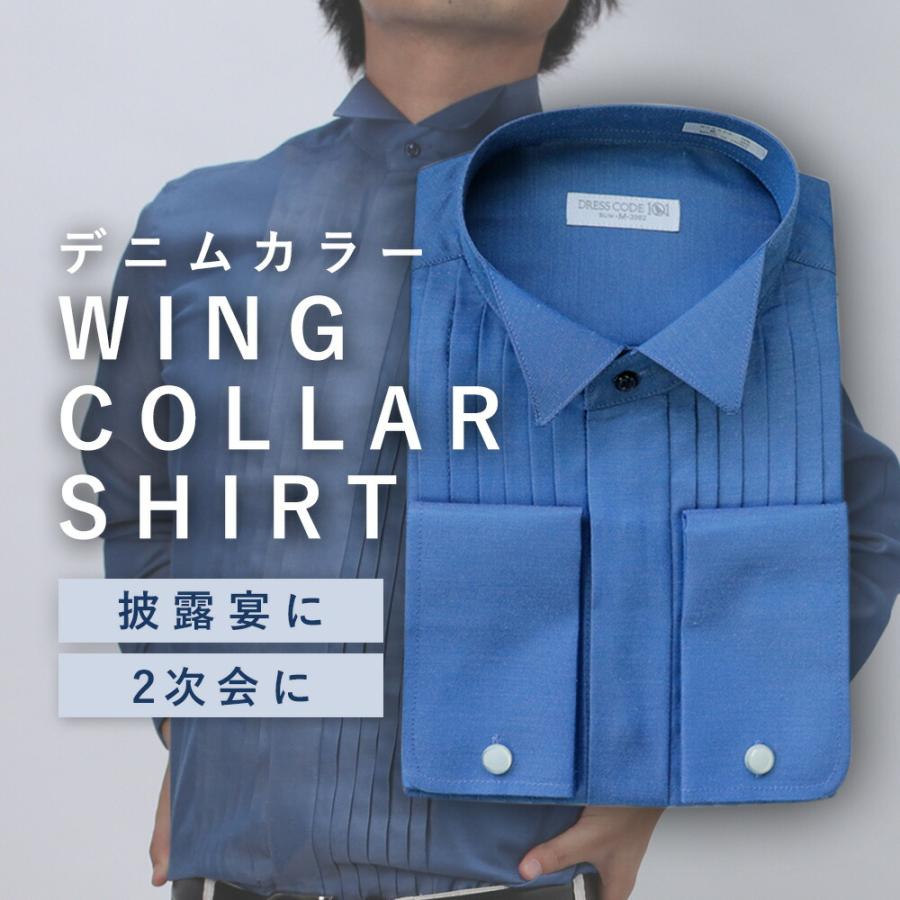 ウイングカラーシャツ デニム 結婚式 ワイシャツ メンズ 新郎 フォーマル デニム調 ブルー 青 ネイビー Item スマートビズ 通販 Yahoo ショッピング